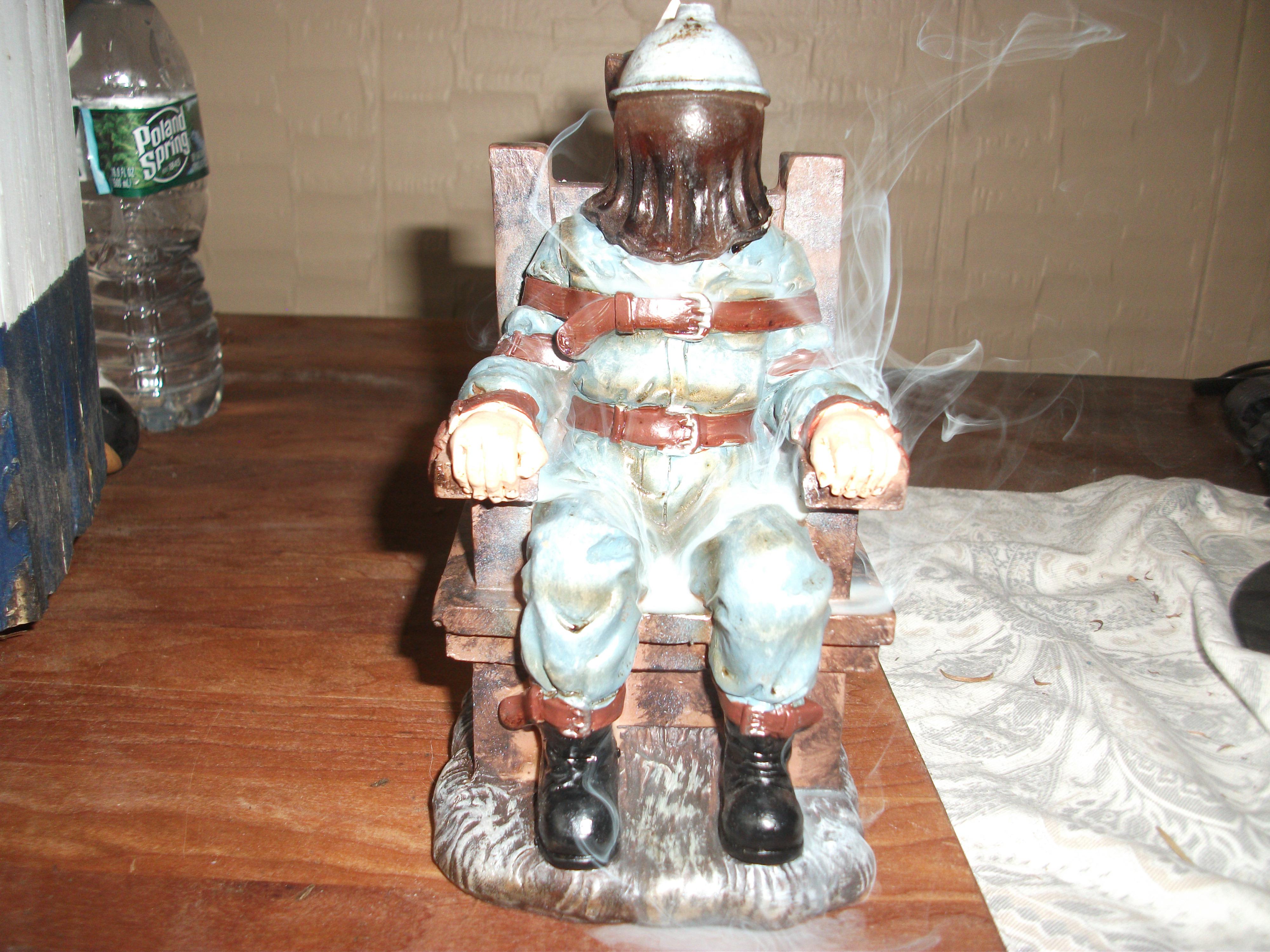 Here's an incense burner that'll make you look twice. I enjoy the odor/scent incense imparts to a room, so over the years I've collected a few incense holders of unique design to pleasantly aid the eye the sense of calmness smoke offers. My niece seeing my collection thought I needed a piece to match the smoking elements in house and yard, but with a twist. The piece incorporates a downdraft design allowing the smoke to escape from different areas mimicing a realistic interpretation. Although I found it unusually distant as compared to my traditional Japanese holders, I do believe it has a place. However, with as much enjoyment incense smoke contributes to your well being, still nothing beats the smell of a brisket slow cooking in the back yard.