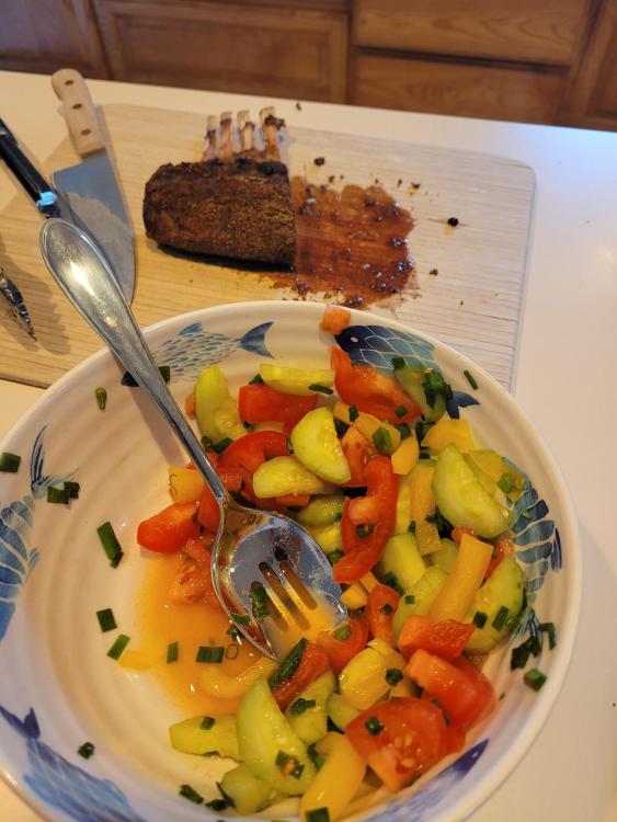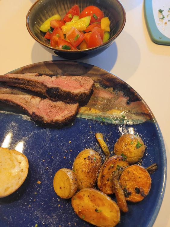 Cooked a nice lamb rack this afternoon, with roasted potatoes, and a cucumber tomato salad. Enjoy the super bowl, may your team win Enjoy Steve
