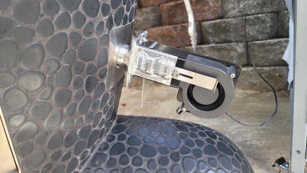 Thanks for the tip @jdbower on the Therm works universal mounting kit. I don't own a Dremel so I just used HVAC duct tape to keep my Fireboard fan together and block off the airflow leaks. Works like a charm! However, at 40%+ fan speed, I did notice that it blew a lot of residual ash around at first from the previous cooks (which could go on your food if you turn it on midcook so be mindful of that) so be sure to keep a clean area if you're going to use higher fan speeds midcook. Also, I noticed that because of the angle of attack from point of entry, for the fan to be more efficient, the lump charcoal should be on the right side of the grill, not the left (although they'll both work of course because it's a vacuum). Regardless, I suspect I'll only use this fan setup for higher temp cooks when I'm a bit rushed for time but still want to eat damn good food.