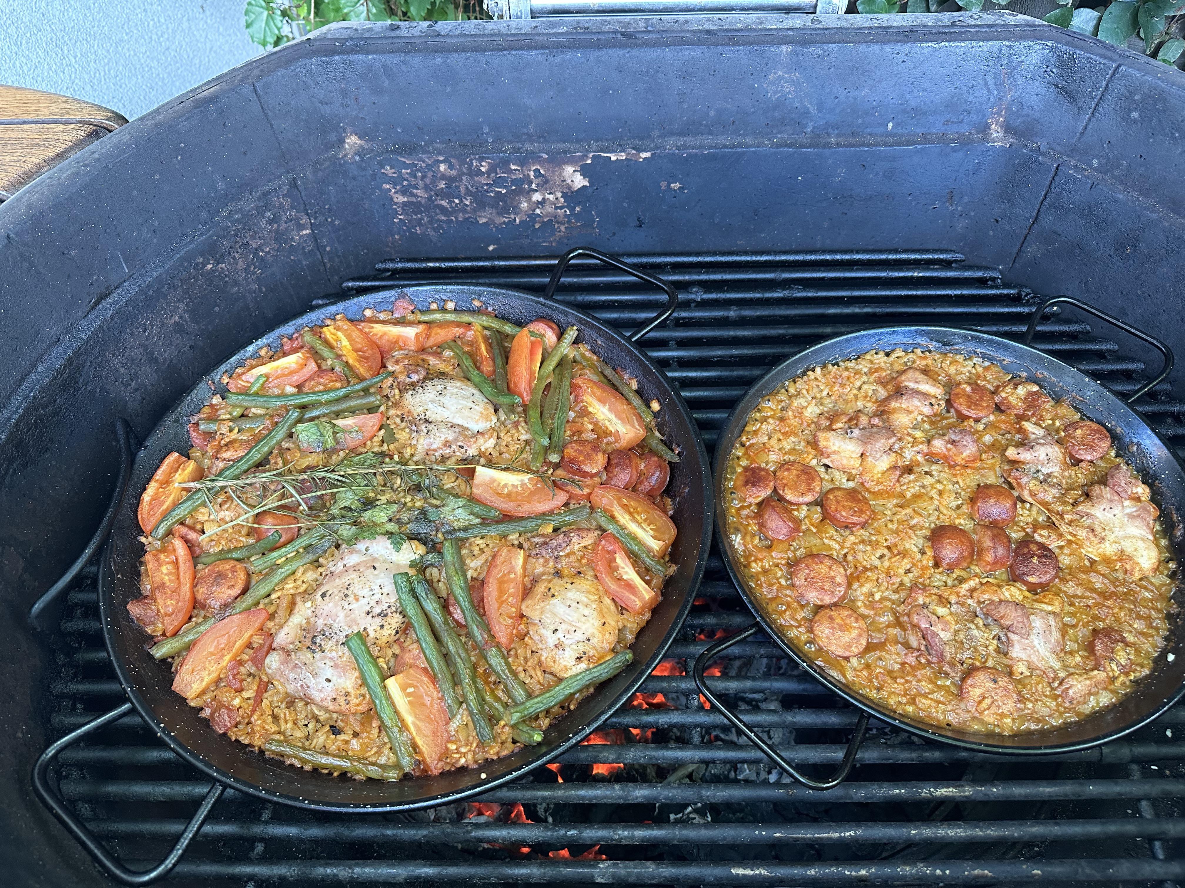 A long cold winter can sometime lead to, too much fishing along the internet. So after looking around I found something that checked the boxes for me and it was a Pizza cooker, an Ooni Pro Karu 2. The name implies in Finnish as in Ooni meanig oven and Karu...rugged and it's about 17 inches wide at the mouth. It is a small enough stout insulated oven with a glass door, still portable and big enough for a vareity of cooks outside the pizza realm. It takes approx 20 mins to reach temp using lump coal or wood chunk splits and adjustable thereafter.The stove comes with a optional gas burner I don't have, but anticipate buying soon enough. I found it useful, limited only in cooks to your imagination. I thought of David in Hong Kong, the roof dweller limited in space and thought how unique something as this might be requring less space but considered as useful tool for him. I actually was intriqued by this oven because it quickly broils your food for finnish beside pizza, and then has many other applications that might require some thought for inspired cooks. Yesterday seeing Remi's cook on the lower grate pushed me to do the same on this cooker with a old Griswold cast iron skillet...the results were perfect. I used uncooked rice, two sausages and and some Carribean spice, nice. No pics but tonights cook featured Spanish Romesco on fish with charred vegetables over a baked potatoe. It originally called for a toasted sliced long stick bread, however I left that at the store. It's quick, doesn't use a ton of fuel, it uses alternative fuels beside gas...and makes a pizza in 90 sec. It won't replace the KK, it has it's limitations....but unlike the KK you can pack it up for a ride if the need arises. Versatilaty, I like it.1 point
