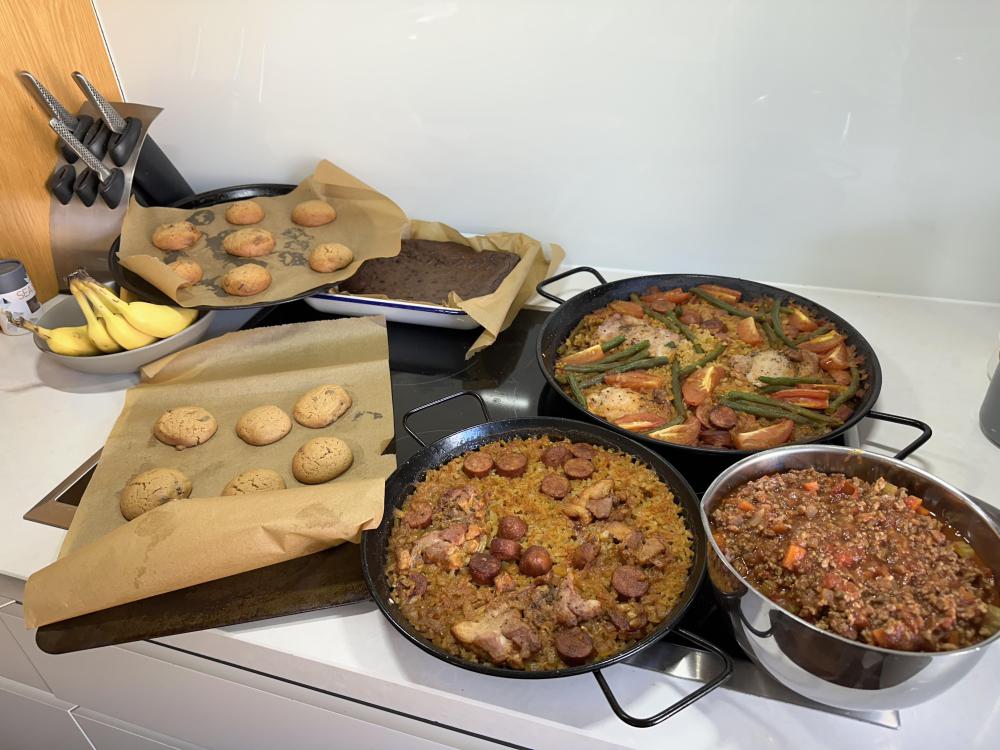 Sunday nights are non-stop activity around here, as with two school aged kids who are busy with many activities during the week itโs sometimes the only night to get any cooking doneโฆ So the KK was busy managing a chicken, chorizo, Roma tomato and green bean paella- while inside a bolognaise sauce was made, as well as choc chip cookies and brownies for the lunch boxes (and banana bread which didnโt make it into the final photo as it was still in the oven!)3 points