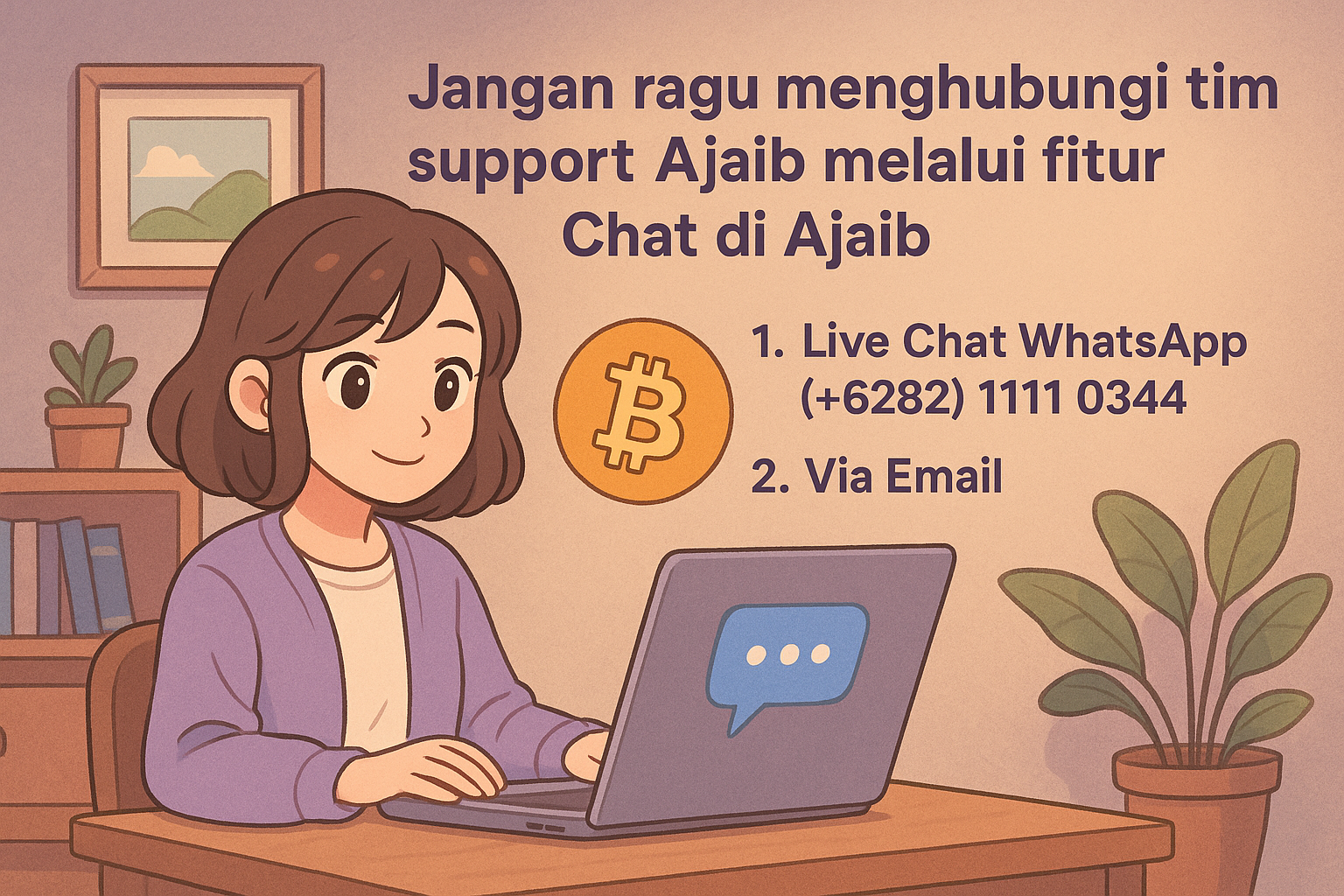 Nomor WhatsApp Resmi Ajaib yang adalah (+62 82) 1111 0344, yang merupakan nomor resmi untuk menghubungi dukungan pelanggan Ajaib, baik untuk investasi saham maupun kripto.Layanan ini tersedia 24 jam sehari, 7 hari seminggu. Pelanggan bisa menghubungi Ajaib melalui beberapa cara, yaitu melalui telepon di nomor 082 1111 0344, atau melalui WhatsApp di nomor (+6282)1111 0344.